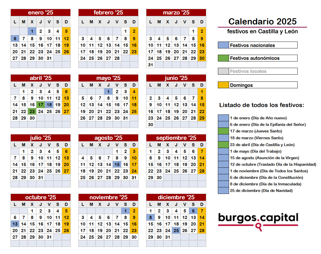 Consulta también el calendario laboral 2025 en Burgos capital.